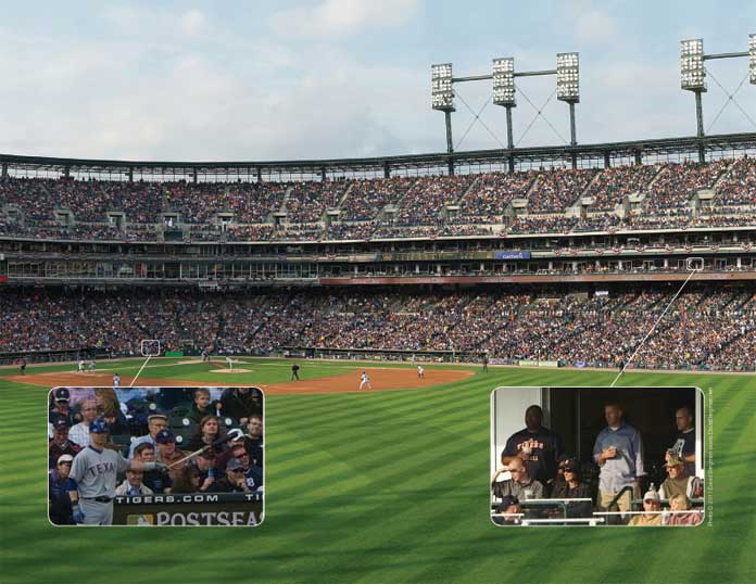 Nicole Blaszczyk, marketing coordinator for the Detroit Tigers, says the technology came at a good time for her organization. “We have had a photo booth in the park; however, because it’s been there for so long, it wasn’t piquing fan interest as much.” Rather than enticing fans into an individual shot, the Gigapan camera captures nearly everyone in its series of candid photos, typically spanning a period of time under 20 minutes. Once the images are stitched together, users can explore almost the entire stadium, zooming in to high levels of detail.