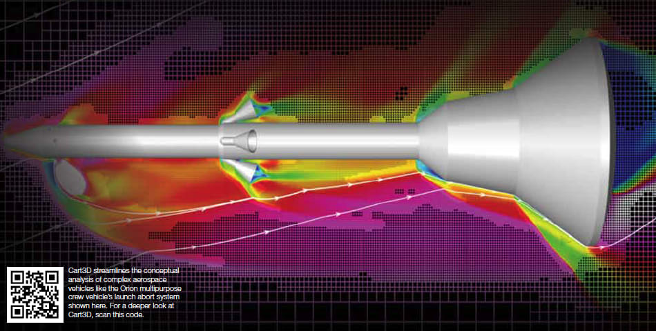 Now, a decade later, NASA continues to enhance Cart3D to meet users’ needs for speed, power, and flexibility. Cart3D provides the best of both worlds—the payoff of using a complex, high-fidelity simulation with the ease of use and speed of a much simpler, lower-fidelity simulation method. Aftosmis explains how instead of simulating just one case, Cart3D’s ease of use and automation allows a user to efficiently simulate many cases to understand how a vehicle behaves for a range of conditions. “Cart3D is the first tool that was able to do that successfully,” he says.