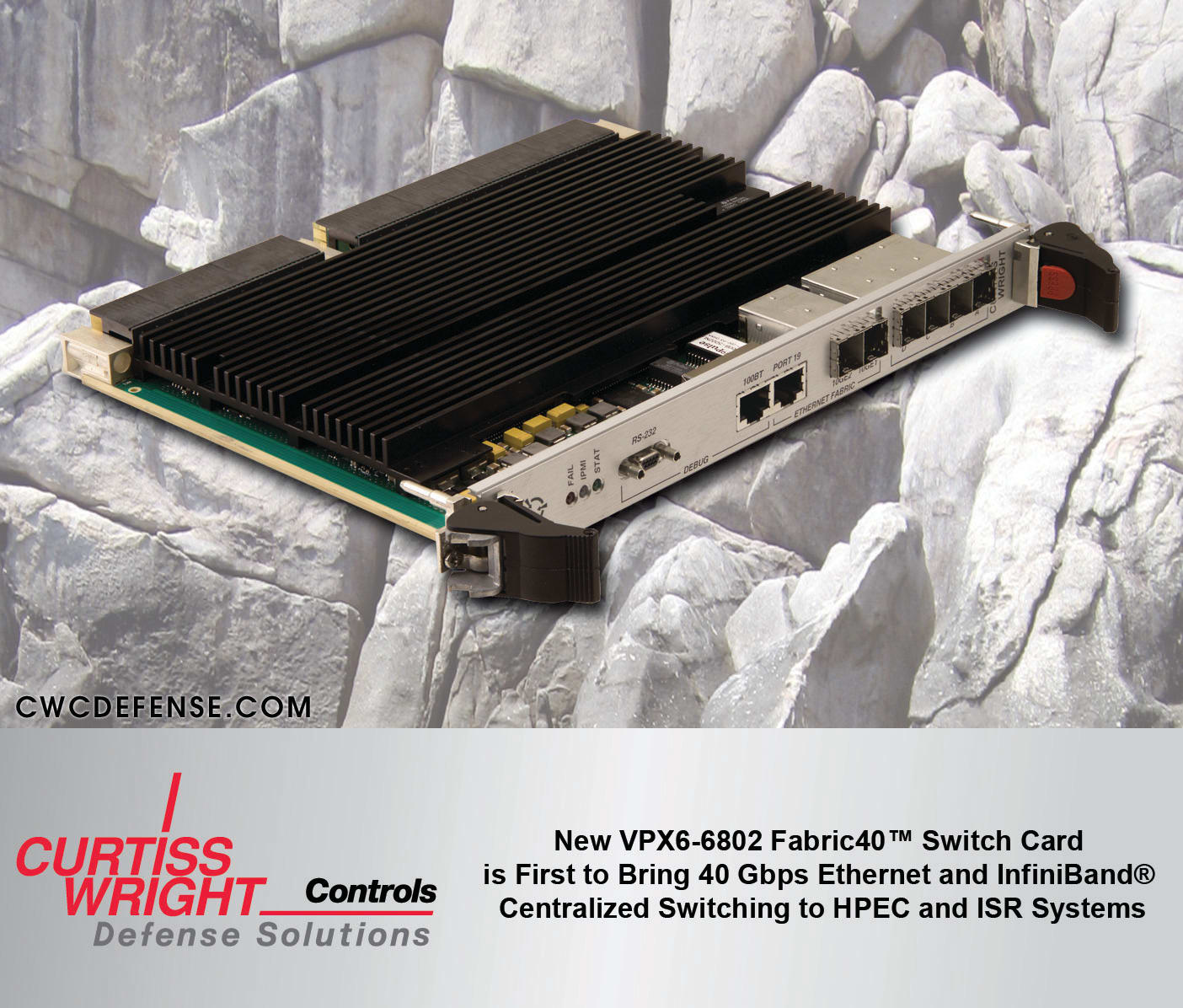 Curtiss-Wright Controls Defense Solutions (Ashburn, VA), a business group of Curtiss-Wright Controls, has introduced the newest member of its Fabric40(TM) family of extremely high-speed 40 Gbps OpenVPX™modules. The new VPX6-6802 Fabric40 Switch is the first rugged, high performance 6U OpenVPX (VITA 65) switch card to provide support for 10/20/40 Gigabit Ethernet (GbE) and SDR/DDR/QDR/FDR-10 InfiniBand®(IB) connectivity to OpenVPX™ systems. Systems built using the VPX6-6802 and complementary Curtiss-Wright Fabric40 system elements will deliver over 2x the performance of previous generation SRIO Gen-2-based systems and 4x the performance of 10 GbE-based systems. The fully rugged VPX6-6802 is available in air-, conduction-, and air flow-through (AFT)-cooled configurations. Designed for use with today’s highest speed switched fabrics, the board provides a combined Data Plane and Control Plane high-performance switch for 6U VPX systems.
