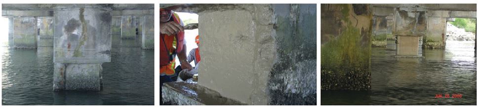 It can be applied to any concrete structure (bridges, foundations, water treatment plants, tunnels, hydroelectric dams, piles in seawater, airports, etc.) at normal temperatures, and does not require a base coat application. It can be applied to the positive or negative side of a structure using a brush, trowel, spray, or injection. It resists freezing/ thawing and chlorides, will not delaminate, and is not affected by ultraviolet radiation.