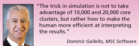 Simulation has always required significant computing capacity. What has changed is the amount of data the software can produce using high-performance hardware. “Certainly, this is not new, as simulation takes many CPU cycles,” said Gallello. “The trick in simulation is not to take advantage of 10,000 or 20,000 core clusters, but rather how to make the human more efficient at interpreting the results.” Yesterday, he said, “The computer was the bottleneck. Today, it is the engineer who has to interpret all the data.”