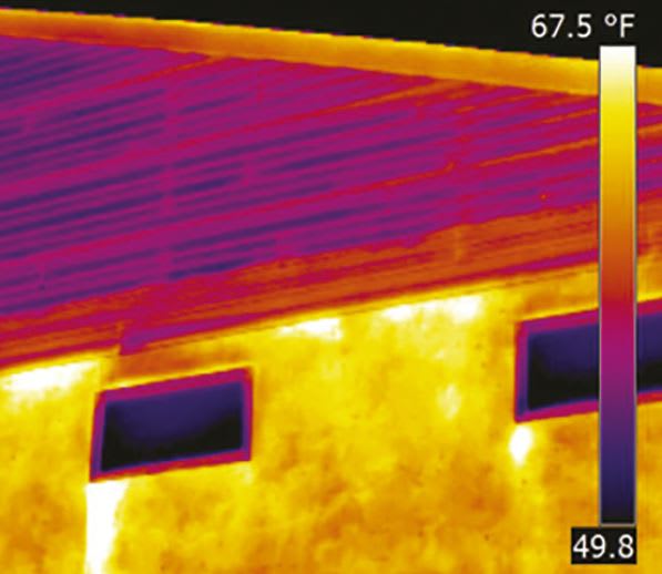 Thermography works by detecting infrared radiation emitted by objects; it measures how hot something is. While thermographic cameras can only see the surface of objects, the rate at which different parts of a surface emit heat can vary based on what lies beneath. For example, thermographic imaging can easily show water leaks behind normal-looking walls, because the water keeps an area of wall cooler than its surroundings. Similarly, defects throughout the material composing an aircraft wing can be exposed by measuring the heat given off along its surface.