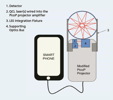 A powerful tool in understanding the role that greenhouse gasses play in climate change would be real-time data from laser chemical sensors providing concentrations and locations of key gasses. The adoption and widespread use of smart mobile phones is an ideal platform on which to create an international web of data collection devices. Because long path lengths often mean more space, many precision instruments are too large to be useful anywhere outside of a lab or test bench environment. A more compact method of achieving long path lengths is needed to advance the field of trace chemical detection.