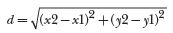Given the coordinates of two points on the image plane, the distance (d) between the points is calculated using the following formula:
