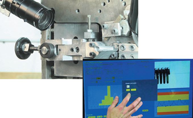 A camera gauge system from Newcomb Spring Corp. (Decatur, GA) provides precise, image-based length measurements, with data recording and reportable order details. The system measures compression springs as they are manufactured, capturing and saving a digital image of each part and recording part dimensions. If part measurements approach maximum tolerance levels, the system’s computer program automatically triggers an adjustment in connected wire coiling machinery, causing the equipment to recalibrate and comply more closely to nominal specifications. When the order is complete, a report and digital record is available for download.