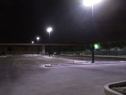 The LED layout included 16 270-watt Merak fixtures, installed in pairs on a 25-foot double-post pole. The facility chose the LED fixture design that enabled an average reading of just over four footcandles, with a maximum reading at 15.9 beneath the poles and minimum of 1.4 footcandles in other areas. The LED fixtures produce 24,300 lumens and offer a long lifetime of 104,000 L70-rated hours, which amounts to more than 23 years of operation when running 12 hours per day. Compared to the proposed 400-watt metal halide fixtures that consume 462 watts with ballast, the LED fixtures will save the production company 896,064 kWh and $130,855 in energy and maintenance throughout the lifetime of the fixtures, based on a $.14 kWh electricity rate.
