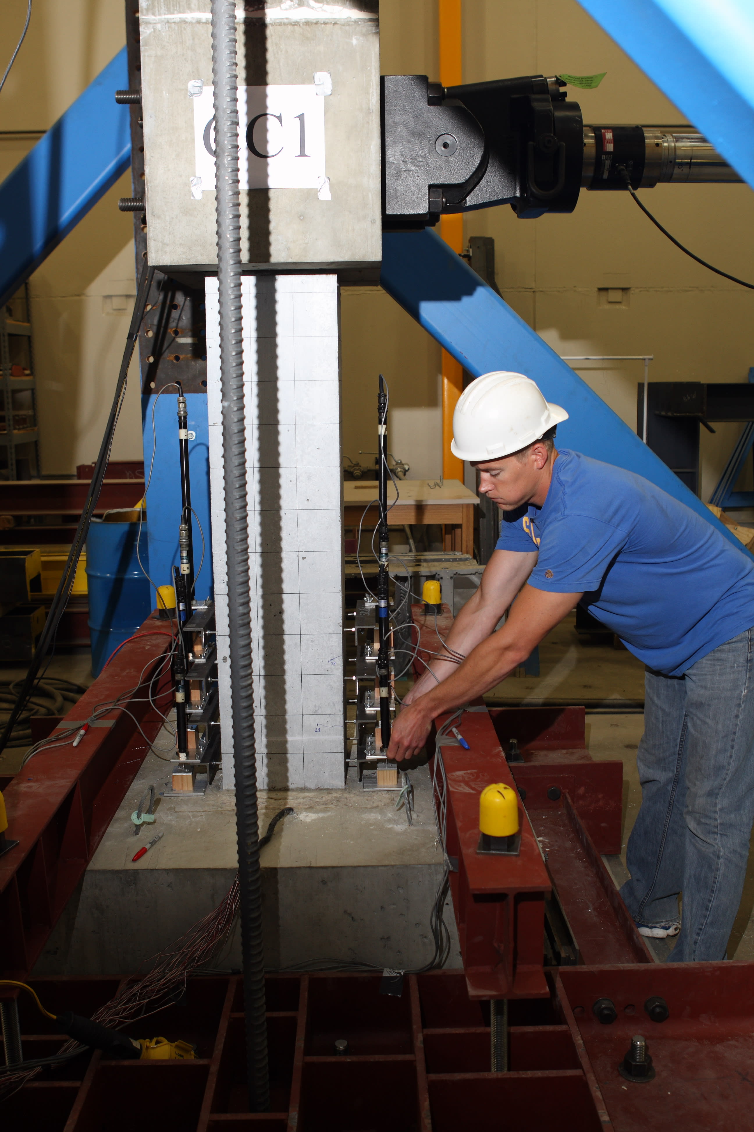 For a 2013 project, graduate student Todd Pauly determined that bridge columns made of self-consolidating concrete can be used in regions that experience earthquakes. Last fall, graduate student Brett Tigges began evaluating the effectiveness of a concrete wall poured between two bridge columns in preventing bridge failure that might occur if a semi-truck crashed at high speed into the bridge column.