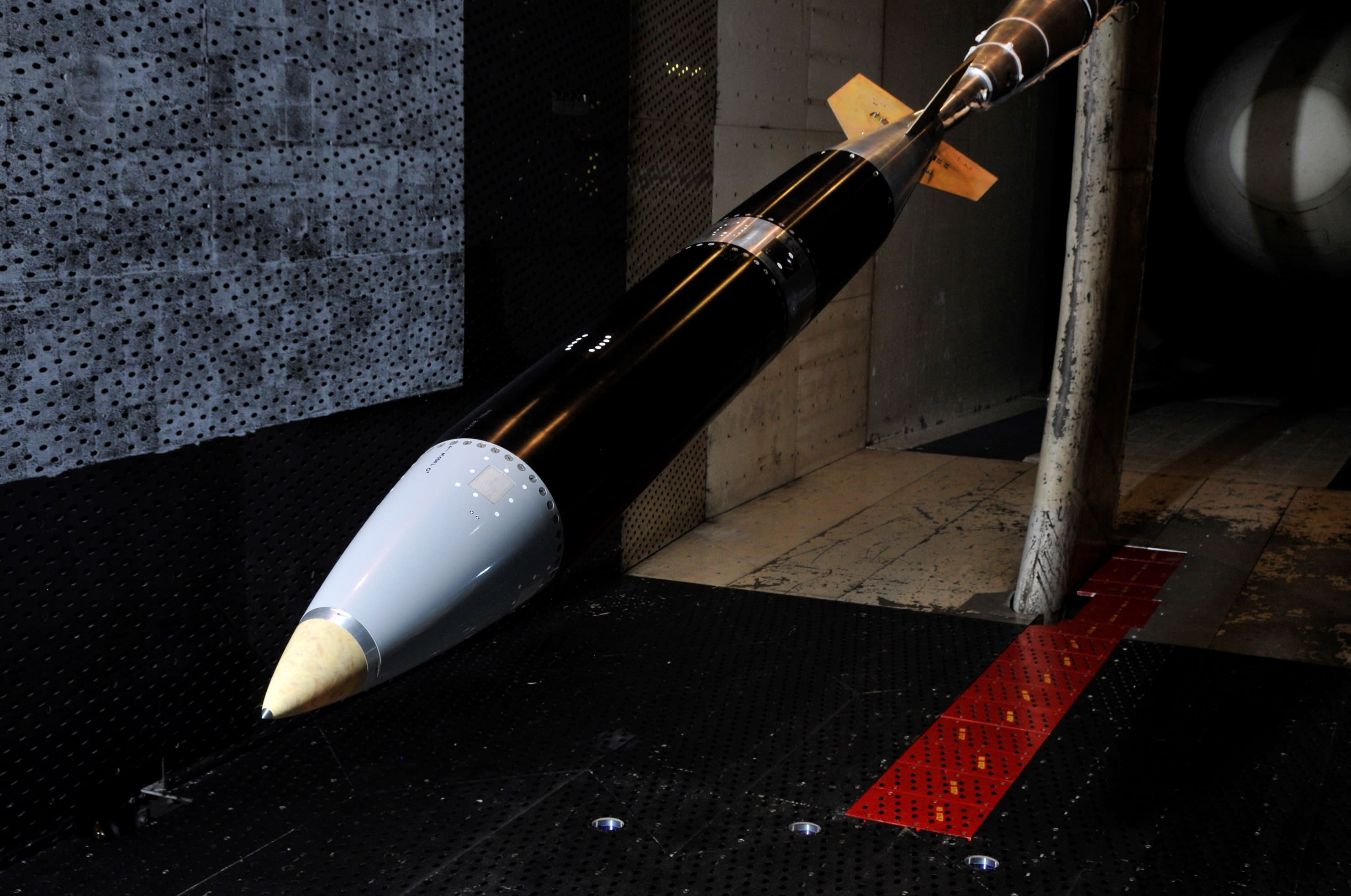 The complex test required a wind tunnel big enough for a full-size mock B61. Most wind tunnel tests use models smaller than the actual flight hardware, but the physics of the B61 rocket motors cannot be replicated on a reduced scale. Researchers determined that the test uncovered a previously uncharacterized physical phenomenon that they believe arises because of the unusual shape of the rocket motors and from other features.