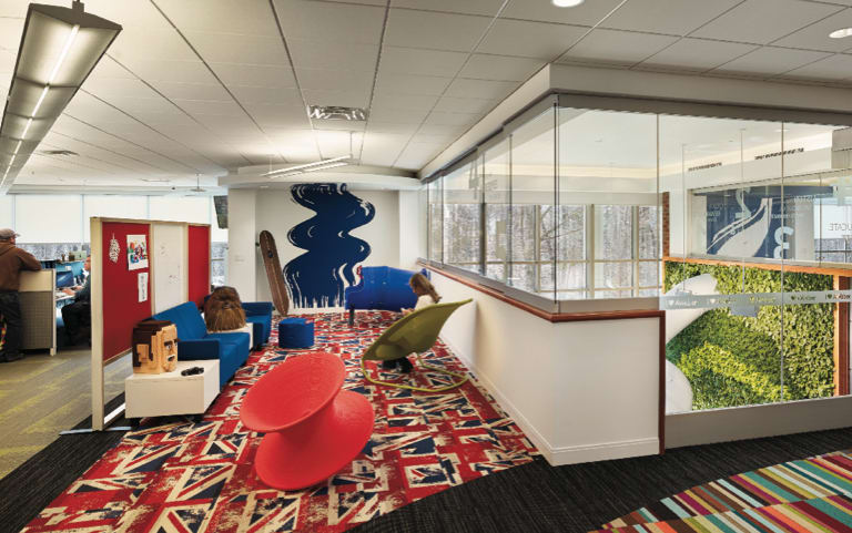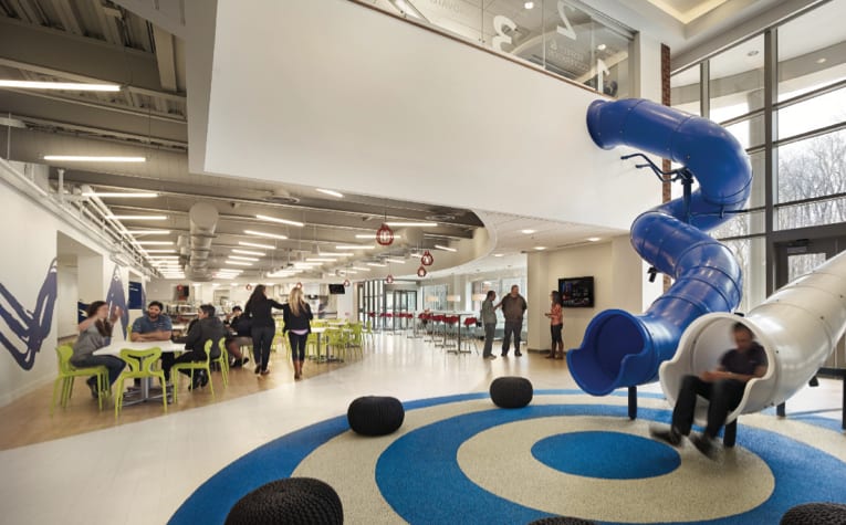 AWeber Communications in Chalfont, PA thrives on creative energy. From free-form office space, to tube slide transports, to a dynamic lighting control system that automatically responds to the outdoor environment, AWeber offices combine playfulness with productivity and energy efficiency. These values are built into the office design, and evaluated regularly.