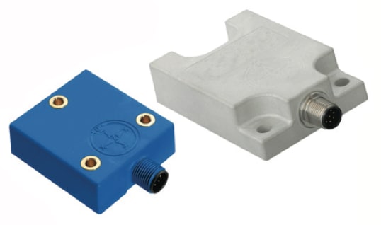 The T-Series industrial inclinometer from BEI Sensors (Goleta, CA) measures slope or tilt angles of an object with respect to gravity. It uses MEMS technology, and offers a range of motion feedback including dual-axis up to ±60° or single-axis of 360°, with resolution of 0.01° and accuracy of 0.1°. The inclinometer incorporates built-in linearity and temperature compensation both for offset and sensitivity. The tilt sensor provides mechanical stability with an encapsulated sensor and a glass-fiber-reinforced plastic or an AW6082-T6 aluminum alloy housing. The plastic housing is manufactured with automotive-grade, UV-resistant material. Available output options include 4-20 mA or 0.5 – 4.5V for a simple analog interface, or a CANopen output for integration into existing bus systems. Designed for harsh outdoor applications, the inclinometers are sealed up to IP68.