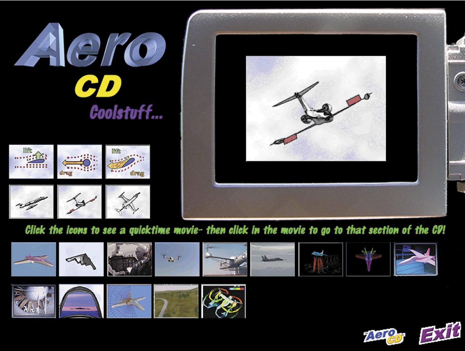 Exploring Aeronautics was done in cartoon animation to make it appealing to kids, notes Andrew Doser, an Ames graphic artist who helped to produce the CD-ROM, along with a team of multimedia programmers, artists, and educators, in conjunction with numerous Ames scientists. In addition to lively animation, the software features QuickTime movies and highly intuitive tools to promote usage of NASA's scientific methods in the world of aeronautics.