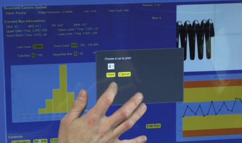 The Newcomb Camera Gauge System is programmed to automatically shut down when order quantities are fulfilled, or if too many parts exceed allowable tolerances. There is also a safety shutdown if there is ever a problem.