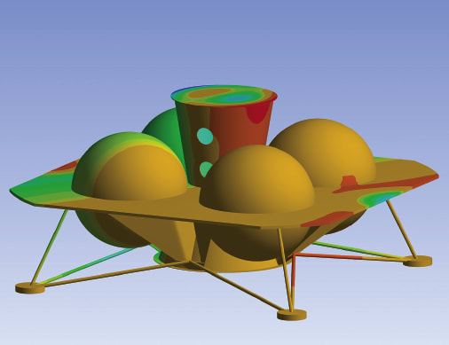 Astrobotic also uses ANSYS Mechanical to study the stresses and deflections the lunar lander will encounter during the intense random vibrations of launch, and the shock loading of touching down on the lunar surface. Astrobotic used ANSYS Mechanical software to determine stress distributions of major components and assemblies to enable the Griffin lander to withstand 13 Gs of acceleration and the vibration loads encountered during launch and landing. Static acceleration, frequency sweep, random vibration, shock, and transient loads were applied to the models to understand the behavior of each design. Dynamic vibration testing validated and calibrated the simulations. Simulation technology enabled the research team to examine alternative structures and materials to find the most effective combination in the early concept stages of development, before physical prototypes were built. Thermal analysis performed with ANSYS Mechanical™ software helped engineers determine an optimal design to survive the large temperature variations and heat dissipation challenges of the lunar environment. Understanding thermal cycling was vital because differences in thermal expansions of various components cause conventional fasteners, solder joints, snap fits, and other parts to pop, fracture, and otherwise degrade.