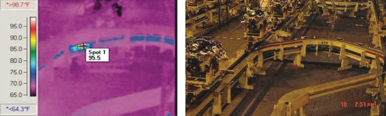 Through a corporate initiative, the GM Infrared Standards Committee continually tracks the value of this program on the basis of a written cost-avoidance calculation and procedure. As a result of continued, demonstrated savings, GM has adopted a written practice that is treated as a living document. Following are three recent cases at the Romulus facility in which inspection of equipment using FLIR infrared cameras has yielded significant savings.