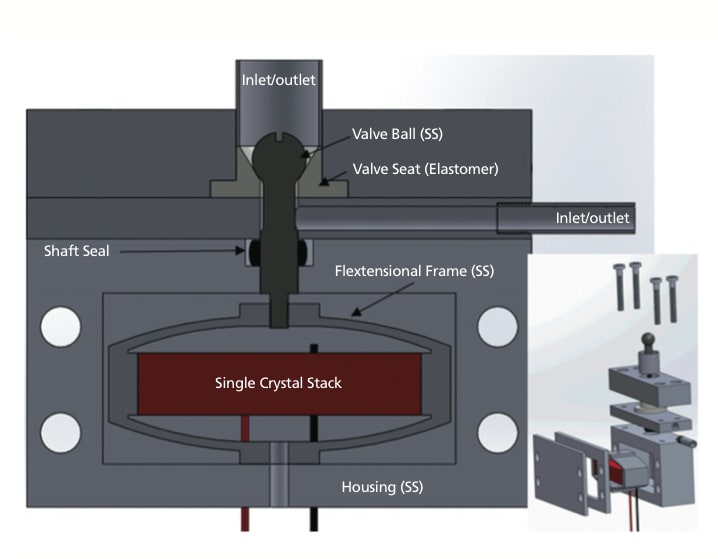 The best candidate actuator material for this application, based on mass, power, and reliability, were the new single-crystal piezoelectric materials that have been developed for cryogenic applications. Since the origin of high electromechanical properties of relaxor-PT single crystals is due to the polarization rotation effect (i.e., intrinsic contributions), the property degradation at cryogenic temperatures is much lower than in PZT (lead zirconate titanate) ceramics, making them promising candidates for cryogenic actuators from the perspective of stroke and power loss in the actuator when activated.