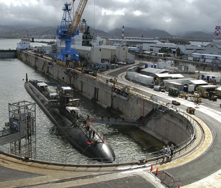 Pearl Harbor Naval Station and Hickam Air Force Base have grown up together around the historic port known as Wai’Momi, adjacent to Honolulu. Pearl Harbor Naval Shipyard (PHNSY), located at Joint Base Pearl Harbor-Hickam, is a one-stop regional maintenance center for the Navy’s surface ships and submarines. It is the only intermediate maintenance facility for submarines in the Middle Pacific.