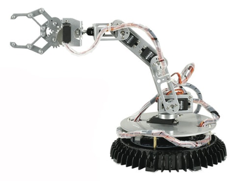 The robot is controlled using the included keyboard or RACS software. Movements of the Vector can be recorded and played back. The I/Os, together with the I2C bus system, allow the addition of extra modules such as wireless control. The robotic arm features heavy-gauge aluminum construction, 6 degrees of freedom, USB interface, I2C bus, and 12V power supply.
