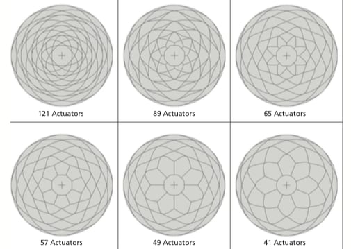 A design methodology was developed that optimizes the performance of active mirrors. Patterns of parameterized ellipsoidal actuators are overlaid onto the mirror, and then numerically optimized to improve performance of the mirror in optical modes that are typically difficult to correct, while also improving performance in other optical modes.