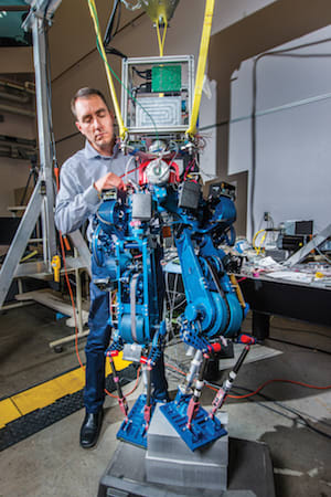 Sandia National Laboratories is developing technology that will dramatically improve the endurance of legged robots, helping them operate for long periods while performing the types of locomotion most relevant to disaster response scenarios. One area of focus is battery life – an important concern in the usefulness of robots for emergency response.