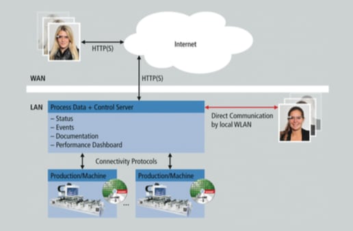 It would also be feasible to program special applications that run locally on Google Glass and establish an interface with the machine’s control computer using protocols like OPC UA or TwinCAT ADS via WLAN. As part of the Google Glass technology study, Beckhoff provided an application for the real-time visualization of binary and analog variables as a local program. In all of these cases, status data (variables, errors) can be displayed. In addition, the operator can use Google Glass to change machine settings or cycles, such as starting or stopping production steps.