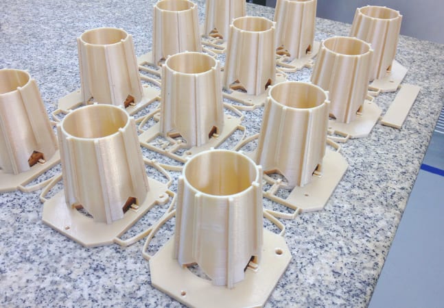 A standard antenna array support design is traditionally machined out of astroquartz, an advanced composite material certified for space. The team knew building custom antenna arrays out of astroquartz would be time-consuming and expensive because of overall manufacturing process costs (vacuum forming over a custom mold) and lack of adjustability (copper sheets are permanently glued between layers of astroquartz). The custom antenna design also contained complex geometries that would be difficult to machine and require multiple manufacturing, assembly, and secondary operations, causing launch delays. JPL turned to additive manufacturing technology to prototype and produce the antenna arrays.