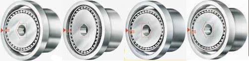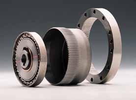 Harmonic drive gears are made up of three basic parts (Figure 1). The circular spline (right) is a rigid ring with internal teeth, engaging the teeth of the flexspline (center) across the major axis of the wave generator. The flexspline is a nonrigid, thin cylindrical steel cup with external teeth on a slightly smaller pitch diameter than the circular spline. It fits over and is held in an elliptical shape by the wave generator, a thin raced ball bearing fitting onto an elliptical plug serving as a high-efficiency torque converter.