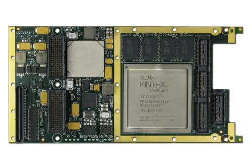 The ADM-XRC-KU1 from Alpha Data (Denver, CO) is a high performance reconfigurable XMC (compliant to VITA Standard 42.0 and 42.3) based on the Xilinx UltraScale range of platform FPGAs. The ADM-XRC-KU1 features 8GB of DDR4 memory in four independent banks (capable of 38GB/sec aggregate bandwidth), 20nm ASIC-class FPGA with up to 1.2 million logic gates, GTH max line rate of 16.375 Gb/s, LVDS max rate of 1600Mb/s, and can be ruggedized for conduction-cooled systems. The board has a built-in PCIe Gen2 x4 endpoint with 4 high-performance DMA engines. Applications can also utilize up to two direct PCIe Gen3 x8 links to the UltraScale FPGA. The ADM-XRC-KU1 features enhanced system monitoring, which allows the board to be managed by PCI Express or via USB.
