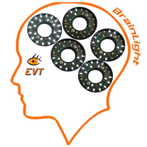 The BrainLight series by EVT (Karlsruhe, Germany) is an intelligent lighting system that allows the user to control both color and brightness, as well as create and save individual lighting patterns. At present the BrainLight series consists of a back light (BrainLight QC) and a ring light (BrainLight R). The back light has separately controllable rows of red, green, blue and white LEDs. There is a diffuser glass in front so the light spreads evenly over the object. All in all there are 48 LEDs, arranged in a grid. The size is 30 x 40 mm, but extra rows of LEDs can be added. The ring light has a RS232 or TTL UART interface and a +5V or 12-24V input voltage. The LEDs are separated into 8 segments each with 3 LEDs.