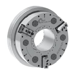 SMW Autoblok (Wheeling, IL) introduced the BIG BORE® BB-EXL-SC2G front-end spring clamp power chuck featuring a jaw stroke of 1.5 inches, as well as increased safety monitoring. It utilizes spring clamping and pneumatic unclamping with lower air consumption. It has a step mode for partial opening and clamping when shimming. As a self-centering chuck, it has an open and clamp time of less than three seconds.