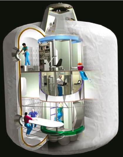 Ideally, the water wall is composed of a series of membrane bags, packed as dry elements, integrated into an inflatable habitat structure wall. After launch and deployment, it is filled with water and maintained as both a freshwater supply and radiation shield. As the initial water supply is consumed, the depleted treatment bags are filled with wastewater and take on a dual role of active forward osmosis (FO) water treatment and water-wall radiation shielding.