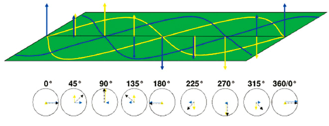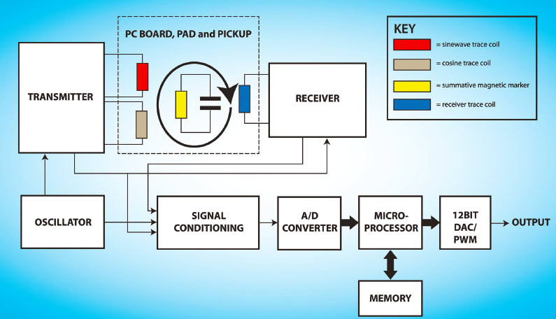 where x is the position of the magnetic pickup or marker, t is time, w is the frequency of the waveform applied, and H is the strength of the magnetic field. It shows that the phase of the sum of the magnetic fields (wt+x) at a distinct measurement point is directly proportional to the linear position x. By measuring the phase shift between the outgoing and the received sinusoidal signals, a dc voltage is produced that is proportional to the phase difference or phase shift caused by the position marker’s change in position.