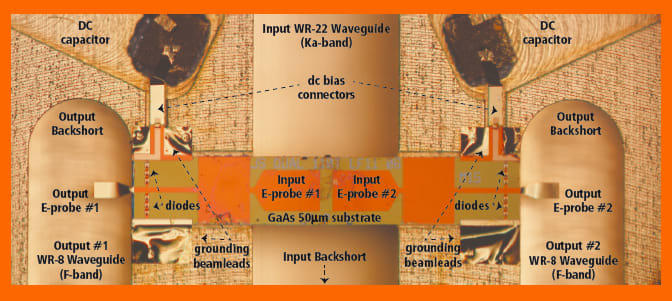 All-solid-state, room-temperature, multipixel, sub milli meter-wave re ceiv ers are in demand for efficient spatial mapping of a planet’s atmosphere composition and wind velocities for future NASA missions to Venus, Jupiter, and its moons. Roomtemperature operation based on Schottky diode technology is a must in order to avoid cryogenic cooling and enable long-term missions. This technology is also being successfully applied for very-high-resolution imaging radars for standoff detection of concealed weapons. For submillimeter-wave radar imaging, the main issue is that, in order to reach video frame rates with high image pixel density, multi-pixel focal plane transceiver arrays are needed to illuminate targets with many radar beams simultaneously.