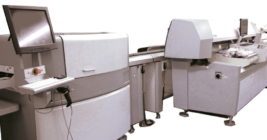 High-speed solder paste depositing by jet printing is made possible by a unique ejection method. The technique ejects tiny droplets of solder paste from a cartridge through an ejector mechanism onto the PCB at the positions required by the Gerber file. The ejector system operates at speeds up to 500 droplets per second, which enables solder paste printing on the fly. The different types of solder paste used for jet printing are delivered in standard cartridges. The cartridge is swiftly snapped into the machine in seconds, so one can switch from tin/lead to lead-free solder paste in a matter of minutes. A barcode label on the solder paste cartridge and identification chip in the cassette ensure that the wrong type of solder paste or solder paste that is past its due date is never loaded by mistake.