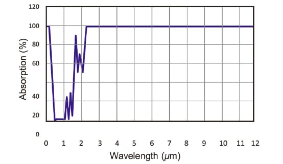Most organic solids, being made up of long chain hydrocarbons, have optical absorption spectra similar to acrylic. They tend to absorb very strongly in the mid- to far-range infrared region, from about 3μm to 15μm wavelength. This explains why CO2 lasers with a wavelength of 10.6μm are so effective for organic materials.