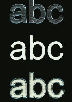 Figure 6 shows a sheet of Delrin™ marked using three different laser technologies. The laser mark at the top of the image was created using a 10.6μm wavelength laser. This mark has a depth of 0.003” (76μm), but no contrast. The laser mark in the center was created using a 1.06μm laser. This mark has contrast, but no depth. MultiWave Hybrid Technology created the laser mark at the bottom, using a laser beam comprised of 10.6μm and 1.06μm wavelengths. This mark has both contrast and a depth of 0.003” (76μm). This represents a new type of laser marking that was not possible in the past. This new type of mark has depth that provides for a permanent mark and contrast that aids in visibility.