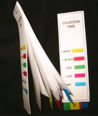 Five saliva specimens are collected using the SPIT booklet. Steroid hormones are then measured using commercially available, high-sensitivity kits. Subjects moisten a filter paper immediately after waking, 30 minutes later, before lunch, 10 hours after waking, and before going to bed at night. They collect these samples on a typical collection day. On the booklet cover, the time of collection is recorded. Samples associated with poor wetting or missing a sample are addressed by a mixed models analysis. After drying, the booklets are placed in a plastic bag and returned via the mail. The 10-hour interval is required for a fixed-minute time frame to determine the area under the CORT and DHEA curves, and for computing molar ratios of CORT/DHEA while remaining within the detection limits of the assay.