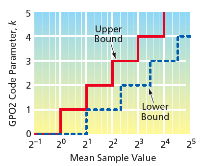 The problem is to calculate or estimate the value of code parameter k that minimizes the expected bit rate (the average number of encoded bits per source symbol) for an image or other source. This problem arises in Rice coding, which is a coding method well known among experts in data compression. The Rice algorithm encodes a block of samples by use of the best code option for the block from among several candidate codes that consist mostly of different GPO2 codes. A fixed number of bits are used preceding the encoded block to indicate which code was selected. The Rice method does not specify how to find the best code option, and the most common approach is to exhaustively try every code option to pick the best one for each block. Information from previously coded blocks is not utilized. This concludes the background information.