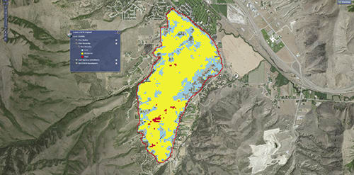 The system underwent its first field testing during Idaho’s exceptionally active wildfire season of 2013. Once a wildfire was contained, the BLM, the Idaho Department of Lands, or the U.S. Forest Service (which has a plan similar to the ESR called a Burned Area Emergency Response) would provide Weber with coordinates for the fire’s extent, and Weber and his students would then plug those coordinates into the cloud-based software program, which he says acts “like a cookie cutter, clipping out all of 20 layers for that spatial extent,” then stores them in a folder held in the cloud. That data was then sent back to GIS TReC at Idaho State University, where it was assembled into a RECOVER client Web map and delivered to the requesting agency through a URL link.