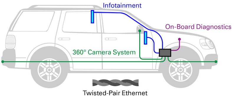 Currently in the early stages of implementation, BroadR-Reach technology will allow multiple in-vehicle systems, such as infotainment and automated driver assistance, to simultaneously access high-bandwidth data throughput over a single, unshielded twisted pair cable.