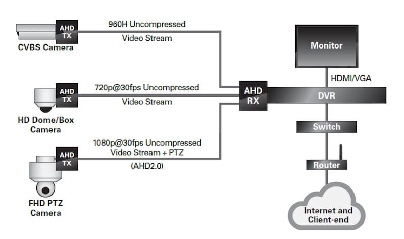 Although the cameras use analog signals, they must be able to transmit high-definition video throughout the vehicle’s network. AHD is designed to transmit a variety of high-definition video signals that could otherwise be handled by a complex HDMI connection. By supporting multiple video transport protocols, AHD proves to be very versatile and allows for backward compatibility for legacy modules that will not phase out immediately. The AHD line can carry the new high-speed data as well as lower speed protocols on the same wire, using the same chipset.