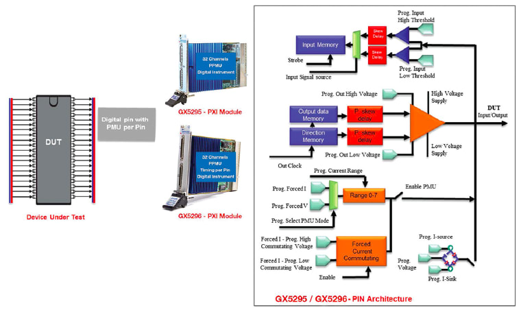 As noted, a PMU can be used in one of two modes to perform DC characterization tests on the input and output pins of digital devices: