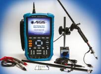 The AEGIS® CAT II/III Shaft Voltage Tester™ digital oscilloscope from Electro Static Technology (Mechanic Falls, ME) enables testing of industrial motors controlled by variable frequency drives (VFDs). The tester is designed and configured to take and capture voltage measurements from the spinning shafts of motors. The digital oscilloscope comes with a conductive microfiber-tipped probe, a probe holder with magnetic base, and a carrying case. The 2-channel, full-function, 100-MHz oscilloscope has a 5.7" TFT LCD color display, a multi-language user interface, and a 5-hour rechargeable/replaceable lithium-ion battery pack. The oscilloscope is capable of sampling rates of 1 GSa/s to 50 GSa/s, and has a USB port for data transfer or flash drive storage.