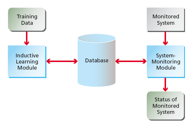 The inductive monitoring system (IMS) is a system of computer hardware and software for automated monitoring of the performance, operational condition, physical integrity, and other aspects of the "health" of a complex engineering system (e.g., an industrial process line or a spacecraft). The input to the IMS consists of streams of digitized readings from sensors in the monitored system. The IMS determines the type and amount of any deviation of the monitored system from a nominal or normal ("healthy") condition on the basis of a comparison between (1) vectors constructed from the incoming sensor data and (2) corresponding vectors in a database of nominal or normal behavior. The term "inductive" reflects the use of a process reminiscent of traditional mathematical induction to "learn" about normal operation and build the nominal-condition database. The IMS offers two major advantages over prior computational monitoring systems: The computational burden of the IMS is significantly smaller, and there is no need for abnormal-condition sensor data for training the IMS to recognize abnormal conditions.