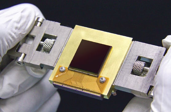 Mainzer: The infrared sensor we use has a light-sensitive detector layer made of HgCdTe bonded to a Teledyne HAWAII readout integrated circuit. Teledyne HAWAII arrays are widely used in astronomy applications on the ground and in space; the Wide-field Infrared Survey Explorer (WISE), Orbiting Carbon Observatory 2 (OCO-2), and Hubble Space Telescope missions use them, among others. The wavelength of light that the HgCdTe detector layer senses depends on the ratio of Hg to Cd in the material. For NEOCam, we have modified the ratio slightly so that the detectors are sensitive to 10-micron infrared light, because this is the wavelength at which Earth-approaching asteroids are particularly bright.