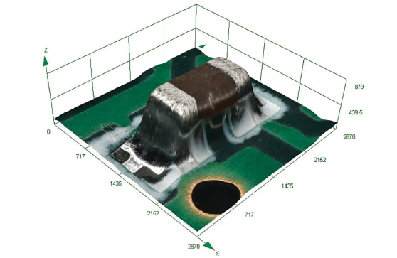 With one click, today’s digital microscopes can image a sample in three dimensions, allowing examination from any angle and an accurate view of the sample (Figure 2). And with accurate height information, detailed 3D images allow sample features or unevenness to be viewed and measured. Height differences and volume can also be measured, making it easier to obtain accurate sample analysis.