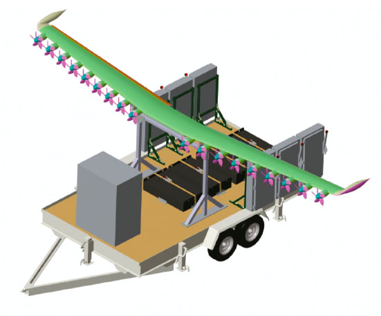 The HEIST Ironbird is centered on a research wing used in the Leading-Edge Asynchronous Propeller Technology (LEAPTech) Project. LEAPTech was designed with 18 independent batterypowered electric motors mounted on a 31-foot carbon composite wing. After testing the LEAPTech wing on the back of a modified flatbed truck at speeds simulating takeoff and landing for validation of aerodynamic and propulsive performance, researchers began constructing the HEIST Ironbird to integrate the wing with a configurable piloted simulation system.