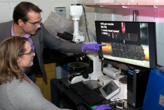 The researchers create primary shapes from an ink made from soybean oil, additional co-polymers, and carbon nanofibers and "program" them into a temporary shape at an engineered temperature determined by chemical composition. Then the shape-morphing effect is induced by ambient heat or by heating the material with an electrical current, which reverts the part's temporary shape back to its original shape.