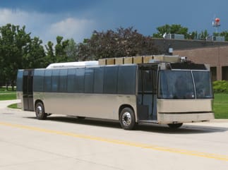The Autokinetics AK12EV Ultralight Electric Bus is a full-size city bus that achieves the equivalent of 32 mpg, while a standard diesel bus gets only 3.5 mpg. The unibody structure, which is made entirely of lightweight, high-strength stainless steel, allows downsizing of the motor, battery, wheels, tires, and other components.