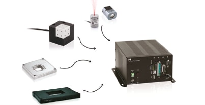 PI (Physik Instrumente) L.P. (Auburn, MA) announced a 4-channel version of the E- 727 digital piezo controller that is designed for multi-axis nanopositioning applications. The controller features a choice of digital high-speed interfaces such as SPI, Ethernet, and USB (and traditional RS-232), and provides three additional high-resolution analog inputs. Other features are low-noise 20-bit DAC and ADC converters, four integrated piezo power amplifiers with an output range of -30 to +130V, and circuitry for capacitive feedback sensors, piezoresistive sensors, and traditional strain gauges. The digital servo provides PID control with two programmable notch filters for higher bandwidth by suppression of mechanical system resonances. A data recorder for high-speed tracing, ID chip compatibility for quick startup, and exchange of system components without recalibration are provided.