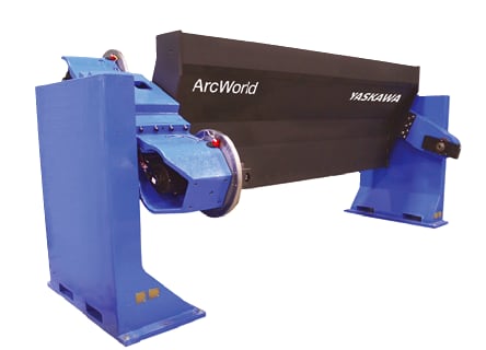 Yaskawa Motoman (Dayton, OH) expanded its line of RM2 ferris wheel-style robotic part positioners. The positioners have two servo-driven trunnion/station axes on opposite sides of a central “sweep” axis. One station is positioned in front of one to four welding robots, while the other station is outside the robot envelope where the operator loads/unloads parts. The 180° sweep axis rotates the stations over/under the central axis between the robot(s) and the operator. Slim-Line positioner models have a 17% smaller width than standard positioners, and are available with 755-kg and 1,255-kg payload capacities. Extra-large-capacity positioners were designed to provide higher payloads and turning diameters in a reduced profile, and feature 1,555-kg and 2,355-kg payload capacities.
